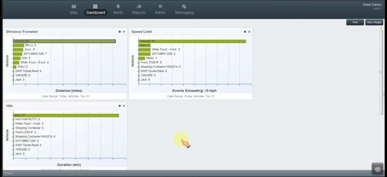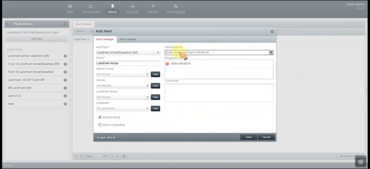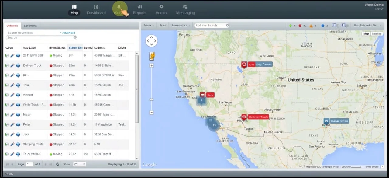 Alerts = set notifications for speeding, PTO, odd hours, maintenance, etc.